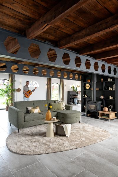 Alcona, 3-places incluant méridienne droite ronde - Vada moss-vert