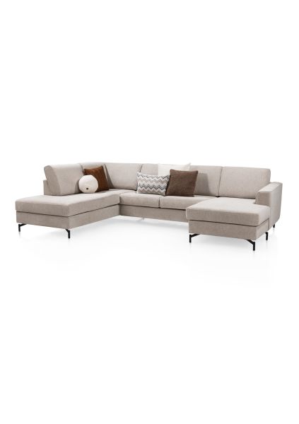 Alcona, méridienne inclus 3-places + ottomane anguleuse - gauche - Vada cuivre/Vada beige