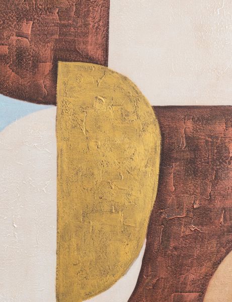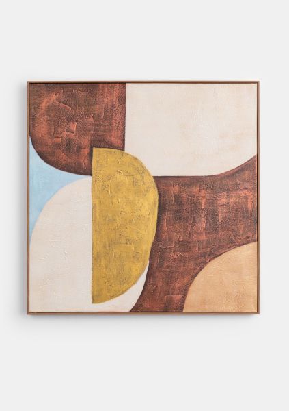 Vous trouverez toujours une place pour le tableau Annabel de COCOmaison, n'est-ce pas ? Des figures géométriques ont été peintes à l'acrylique épaisse sur toile. Le tableau mesure 80 x 80 cm et est encadré dans un cadre en bois épuré. Les couleurs ont été choisies pour s'harmoniser avec de nombreux matériaux et autres couleurs : crème, jaune ocre, rouge brun et bleu clair. Grâce à ses formes abstraites et ses teintes naturelles, cette décoration murale apporte une touche de sérénité à votre intérieur et vous pouvez la contempler à l'infini. Elle sera du plus bel effet au-dessus du canapé, dans un coin terne du salon, dans le couloir ou au-dessus de votre lit !