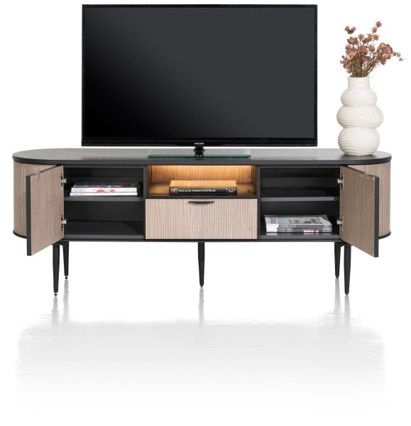 Aramon, buffet bas 170 cm. - 2-portes + 1-tiroir + 1-niche (+ LED)