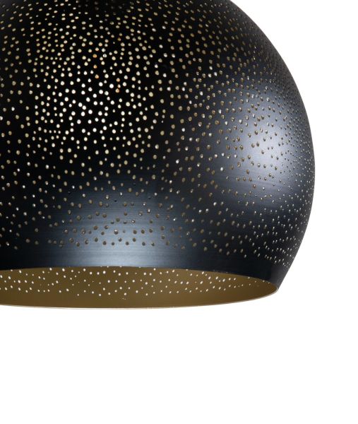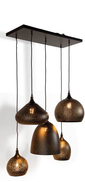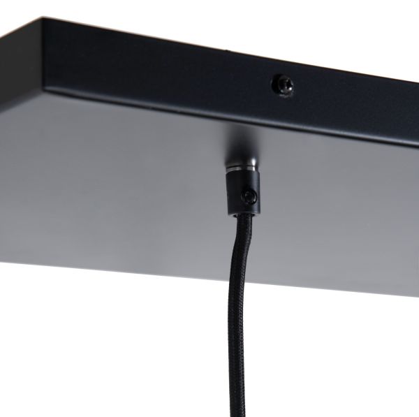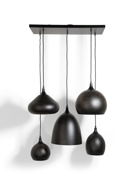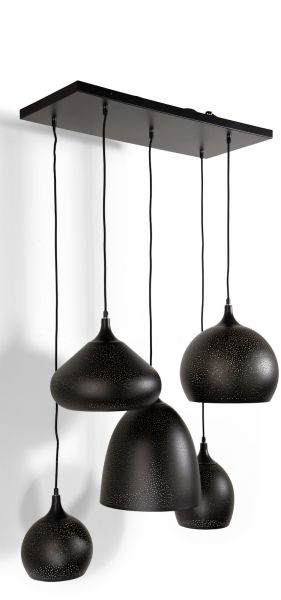 Si la lampe ARJEN de la collection COCO maison est un véritable accroche-regard, elle est aussi un créateur d'ambiance absolu dans votre pièce. Suspendez-la au-dessus de votre table, vos dîners ne seront plus jamais les mêmes ! En effet, un effet lumineux particulier apparaît au mur et au plafond dès que vous allumez la lampe. Comme ARJEN est dimmable, vous créez une ambiance agréable en un clin d'œil. Les cinq suspensions noires avec dorures sont réglables en hauteur (max. 130 cm), elles sont fournies sans ampoules. ARJEN possède une plaque de plafond rectangulaire de 70 x 30 cm. Les dimensions globales de la lampe sont 87 x 44 cm. Découvrez également les autres lampes de la série ARJEN.