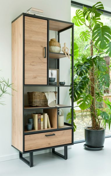Avalon, bibliotheque 80 cm - 1-porte + 1-tiroir + 5-niches