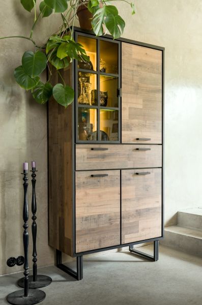 Avalon, buffet haut 120 cm - 2-portes + 1-porte en verre + 1-porte rabattante (+ LED)