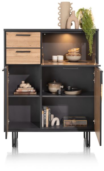 Avalon, buffet haut 120 cm - 2-portes + 2-tiroirs + 1-porte rabattante (+ LED)