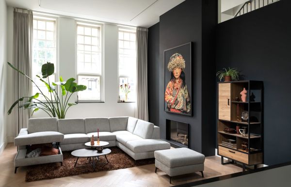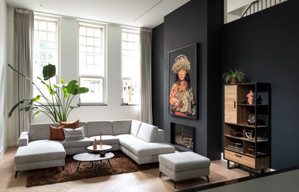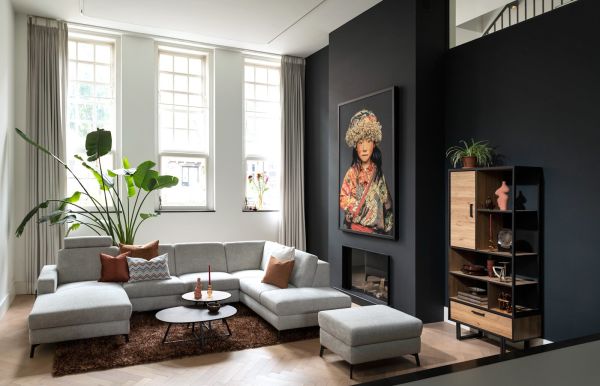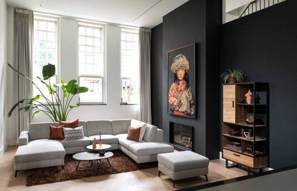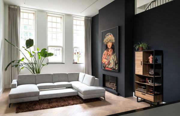 Avalon, buffet haut 120 cm - 2-portes + 2-tiroirs + 1-porte rabattante (+ LED)