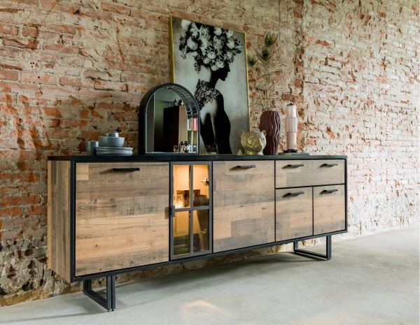 Avalon, buffet 230 cm - 4-portes + 1-tiroir + 1-porte en verre (+ LED)