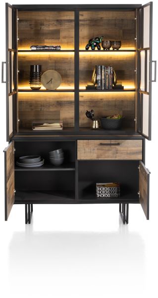 Avalon, vaisselier 127 cm - 2-portes + 1-tiroir + 2-portes en verre (+ LED)