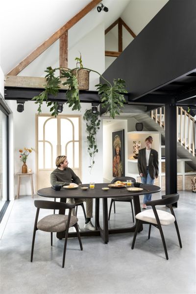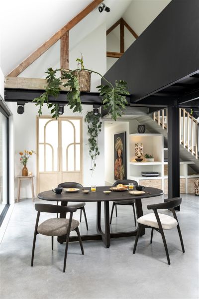 Bellami, chaise - pietement chene basalt - tissu Livigno