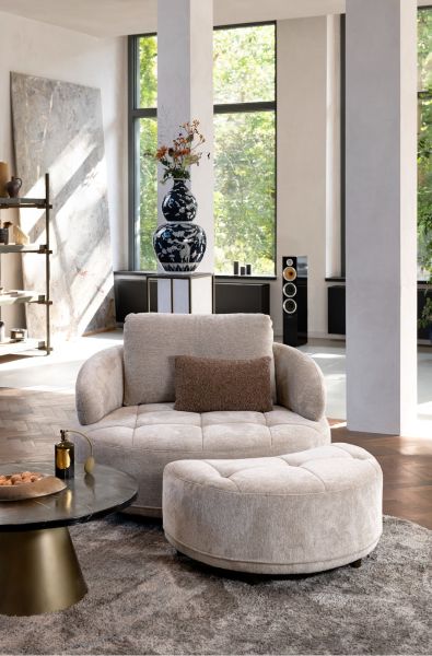 BORGIA est un fauteuil de luxe qui n’est pas seulement extrêmement confortable, mais qui attire également tous les regards ! Ce fauteuil royal offre un confort moelleux et possède un magnifique design arrondi. Pour le revêtement, vous pouvez choisir parmi notre collection selected choices, qui regroupe les meilleurs tissus spécialement sélectionnés pour ce fauteuil. BORGIA repose sur une base invisible, pivotante à 360 degrés, ce qui vous permet de l’orienter dans toutes les directions ! Les coutures décoratives sur l’assise apportent une touche supplémentaire de luxe à BORGIA. Le pouf BORGIA est disponible séparément et se marie parfaitement avec le fauteuil. Vous l’imaginez déjà dans votre salon ?