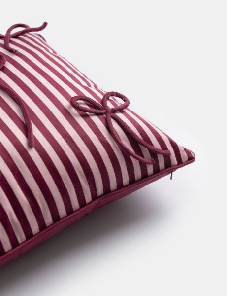 Le joli coussin Bow est un cadeau pour votre intérieur : regardez ces nœuds joyeux ! Il est fabriqué dans un tissu rayé en polyester légèrement brillant, dans les couleurs rose et bordeaux, deux couleurs très tendance dans l'habillement et la décoration intérieure. Avec ses dimensions de 43 x 43 cm, il trouve parfaitement sa place dans un fauteuil. Il ressort particulièrement bien sur un fond naturel. Mais vous pouvez bien sûr aussi le combiner avec d'autres coussins décoratifs de la collection COCOmaison. Nous les proposons en effet dans toutes les couleurs et toutes les tailles !
