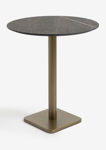 Aménager un petit coin repas ? COCO maison a la solution pour toi ! Dans notre série Brest, tu trouveras de nombreuses petites tables de bistrot et de bar. Les tables ont toutes un pied en métal, disponible en or ou en noir, et un plateau en chêne, en pierre ou en marbre. Tu peux également choisir parmi des variantes rondes, carrées ou rectangulaires. Avec toutes ces différentes options, tu peux choisir parmi pas moins de 72 tables différentes ! Super pratique et élégant donc ! Voici la table de bar ronde avec un diamètre de 80 cm, un pied doré et un plateau en marbre de couleur onyx.
