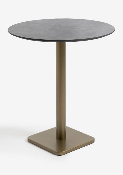 Aménager un petit coin repas ? COCO maison a la solution pour toi ! Dans notre série Brest, tu trouveras de nombreuses petites tables de bistrot et de bar. Les tables ont toutes un pied en métal, disponible en or ou en noir, et un plateau en chêne, en pierre ou en marbre. Tu peux également choisir parmi des variantes rondes, carrées ou rectangulaires. Avec toutes ces différentes options, tu peux choisir parmi pas moins de 72 tables différentes ! Super pratique et élégant donc ! Voici la table de bar ronde avec un diamètre de 80 cm, un pied doré et un plateau en pierre de couleur anthracite.