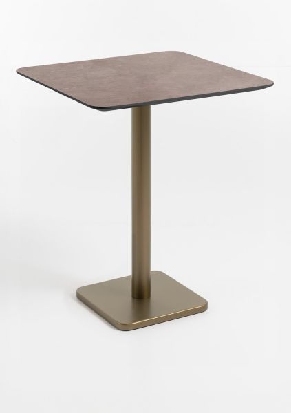 Aménager un petit coin repas ? COCO maison a la solution pour toi ! Dans notre série Brest, tu trouveras de nombreuses petites tables de bistrot et de bar. Les tables ont toutes un pied en métal, disponible en or ou en noir, et un plateau en chêne, en pierre ou en marbre. Tu peux également choisir parmi des variantes rondes, carrées ou rectangulaires. Avec toutes ces différentes options, tu peux choisir parmi pas moins de 72 tables différentes ! Super pratique et élégant donc ! Voici la table de bar carrée de 75 x 75 cm avec un pied doré et un plateau en pierre de couleur rouille.