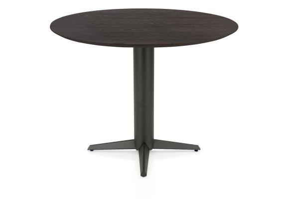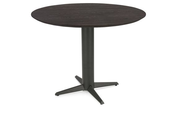 Caletta, Table à manger ronde 120 cm. - plateau en chêne - central à jambes croisées graphite