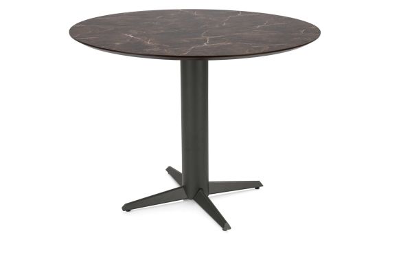 Caletta, Table à manger ronde 120 cm. - feuille hpl primo laminato - graphite central à jambes crois