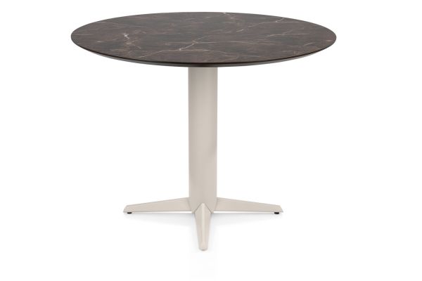 Caletta, Table à manger ronde 120 cm. - hpl primo laminato feuille - tige centrale de l’orteil marro