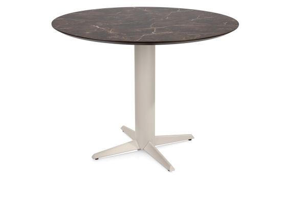 Caletta, Table à manger ronde 120 cm. - hpl primo laminato leaf - crème de patte croisée centrale