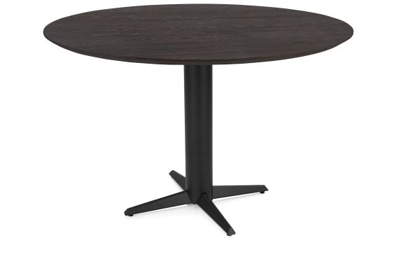 Caletta, Table à manger ronde 120 cm. - plateau en chêne - pied croisé central rough off black