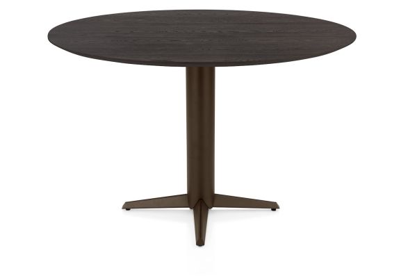 Caletta, Table à manger ronde 120 cm. - dessus en chêne - pointe centrale brun acier
