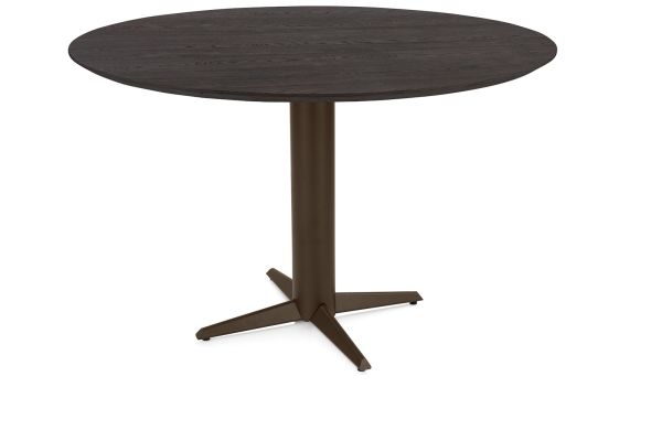 Caletta, Table à manger ronde 120 cm. - plateau en chêne - central jambes croisées brun acier
