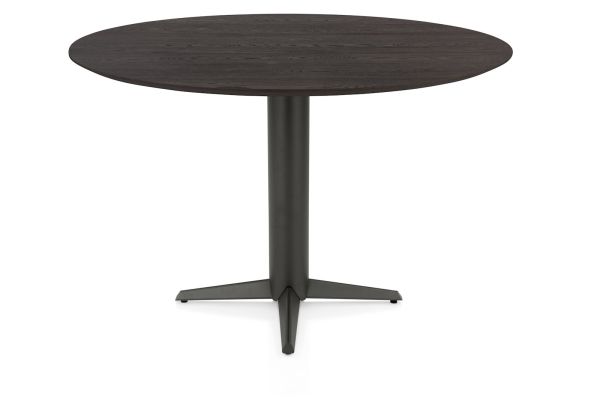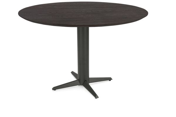 Caletta, Table à manger ronde 120 cm. - plateau en chêne - central à jambes croisées graphite