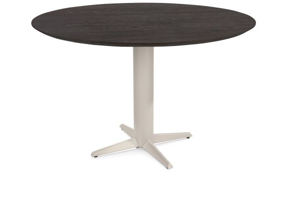 Caletta, Table à manger ronde 120 cm. - plateau en chêne - central à jambes croisées graphite