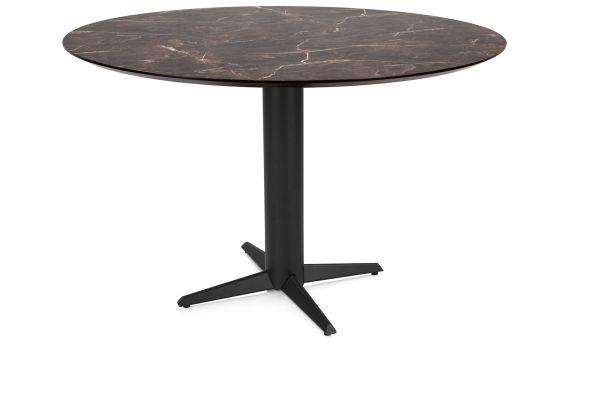 Caletta, Table à manger ronde 120 cm. - hpl primo laminato feuille - tige centrale de l’orteil marro