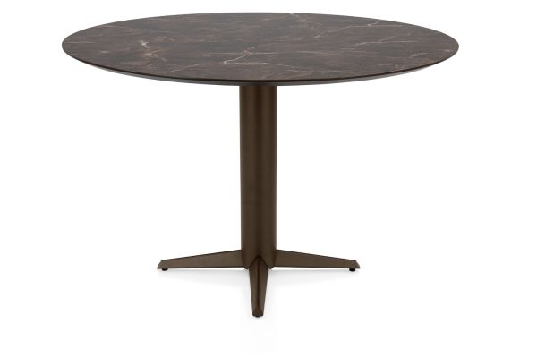 Caletta, Table à manger ronde 120 cm. - hpl primo laminato feuille - tige centrale de l’orteil marro