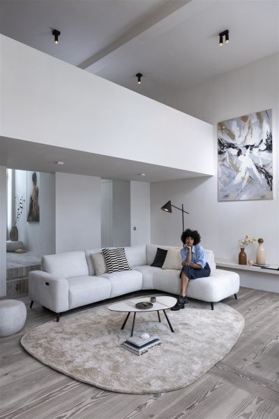 Carini, canape d'angle 2,5 places accoudoir gauche electrique + ottomane droite - Vada Ivory