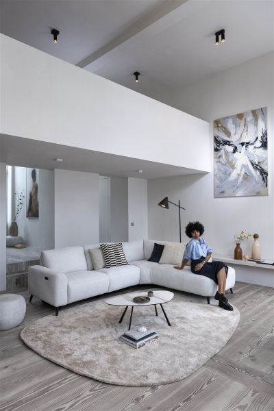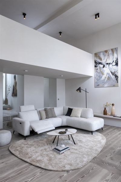 Carini, canape d'angle 2,5 places accoudoir gauche electrique + ottomane droite - Vada Ivory
