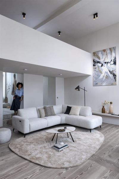 Carini, canape d'angle 2,5 places accoudoir droit electrique + ottomane gauche - Vada Ivory