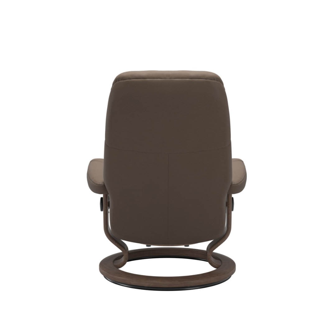 Consul Stressless, fauteuil + pouf M cuir Batick mole Classique base noyer