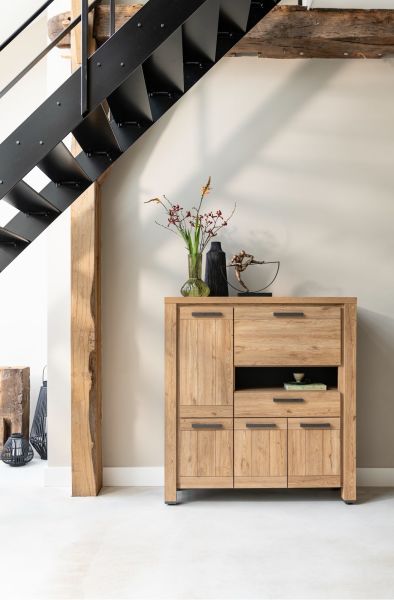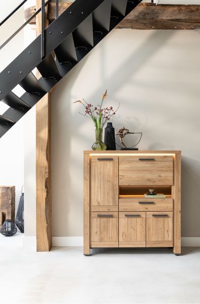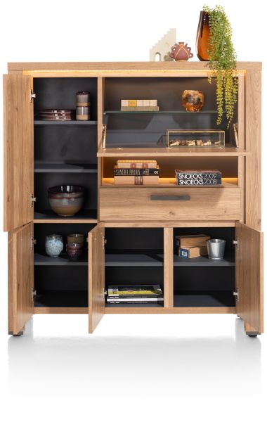 Delmonte, buffet haut 130 cm - 4-portes + 1-tiroir + 1-porte rabattante + 1-niche (LED+variateur)