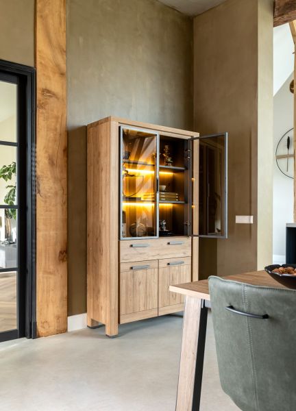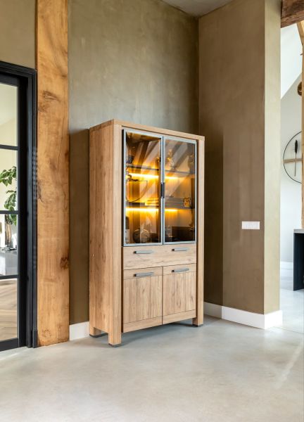 Delmonte, vitrine 110 cm - 2-portes en verre + 2-portes + 1-tiroir (+ LED)