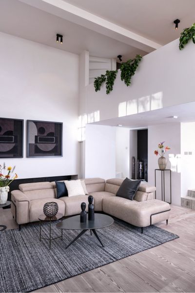 Dolcedo, 2.5-places accoudoir gauche - parti d'angle - ottomane petite droite - tissu Oregon beige