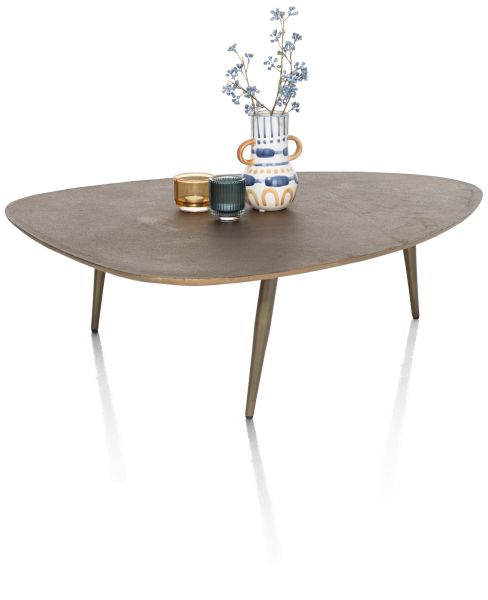 Cette table basse de la collection Dorval est fabriquée entièrement en métal et peut se placer indépendamment, mais elle peut aussi faire partie d'un set de tables de salon. Cette table mesure 82x105 cm et arbore une forme organique. Cette petite table mesure 32 cm de haut et possède un plateau et des pieds dorés. Cette table existe également dans une version avec plateau en relief argenté et des pieds noirs. Laquelle préférez-vous ?