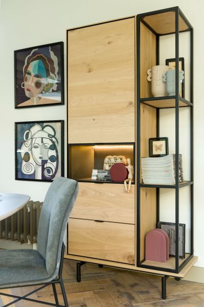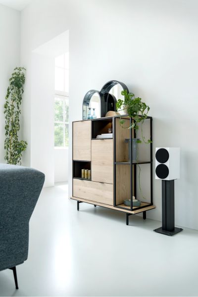 Vous rêvez d'une armoire au design épuré et à l'apparence naturelle ? Voici cette armoire de la série ELEMENTS. L'extérieur est en chêne plaqué de couleur naturelle. Vous préférez une teinte plus foncée ? Que pensez-vous alors de cette armoire de couleur onyx ? Le mélaminé anthracite à l'intérieur de l'armoire apporte une touche de luxe à ELEMENTS. Avec ses 2 portes, ses 2 tiroirs et ses 2 niches dotées d'un éclairage LED, cette armoire est très pratique. Grâce à ses dimensions compactes (90 cm de large), ELEMENT convient à tous les intérieurs. Les pieds en métal apportent la touche finale robuste. Laissez-vous inspirer par les autres armoires ELEMENTS.