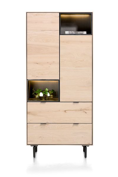 Elements, armoire 90 cm. - 2-portes + 2-tiroirs + 2-niches + led incl. pieds en métal