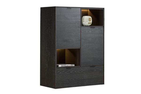 Avec notre nouvelle série ELEMENTS, vous réveillerez le décorateur d'intérieur qui sommeille en vous puisque vous composerez vous-même votre armoire (murale) à votre goût, avec tous les éléments séparés de la série ELEMENTS. Utilisez ce buffet haut couleur onyx de 120 cm de haut et 90 cm de large doté de 2 portes, un tiroir et 2 niches avec éclairage LED en guise d'accessoire et combinez-le avec d'autres articles ELEMENTS en chêne plaqué naturel, vert laqué ou laqué noir, par exemple. Quel sera votre choix : une conception XS ou plus grandiose pour avoir une armoire XXL ?