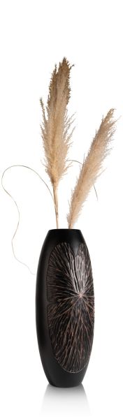 FAYE est un magnifique grand vase noir de la collection COCO maison ; il arbore un motif gravé en forme de feuille. Ce motif confère un style particulier au vase qui trouve très bien sa place dans un intérieur authentique ou un peu plus ethnique. En garnissant le vase de quelques longues branches ou d'herbes de la pampa, vous attirez davantage l'attention sur le motif naturel. Ce vase FAYE mesure 75 cm de haut, il a une forme large, mais existe aussi dans une forme un peu plus étroite et plus haute. Les deux sont fabriqués en polyrésine, un matériau léger, solide et imperméable.