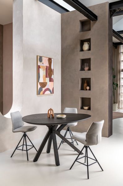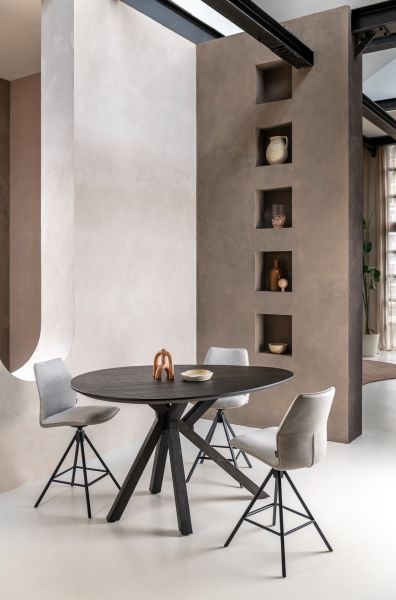 Franky, chaise de bar - pivotante - front Toba Caillou / dos Pala gris clair