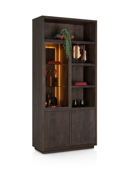Gijon, armoire 75 cm - 1-porte de verre + 2-portes + 4-niches (+ LED)