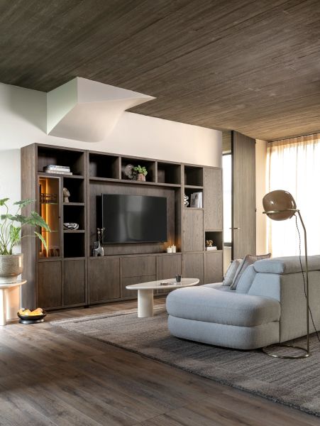 Gijon, meuble tv + partie haute 180 cm - 2-portes + 2-tiroirs + 3-niches + plinthe