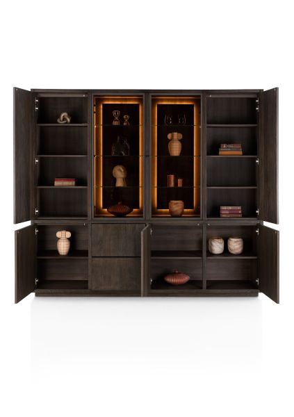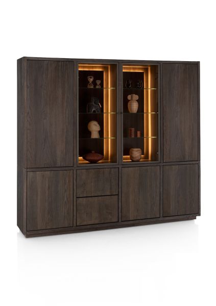 Gijon, vaisselier 240 cm - 2-portes de verres + 5-portes + 2-tiroirs (+ LED) + plinthe