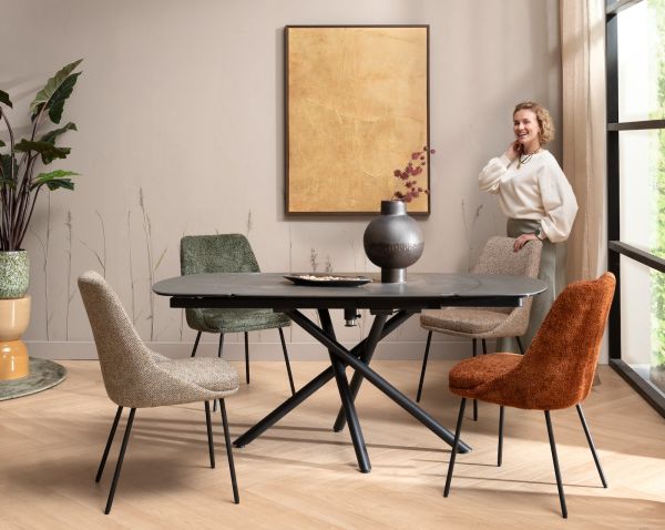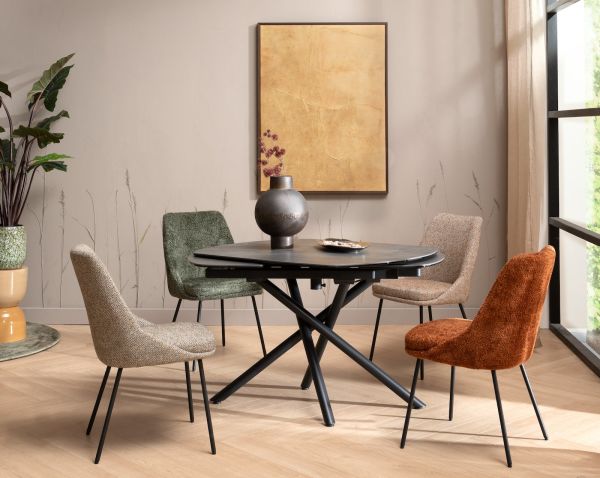Isaac, chaise - 4 pieds - rough off black - tissu Bellini