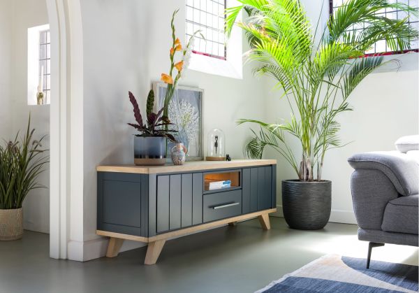 Jardin, buffet bas 140 cm - 1-tiroir + 1-niche + 2-portes rabattantes (+ LED)