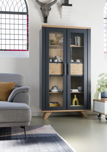 Jardin, vitrine 110 cm - 2-portes en verre + 2-tiroirs (dedans) (+ LED)