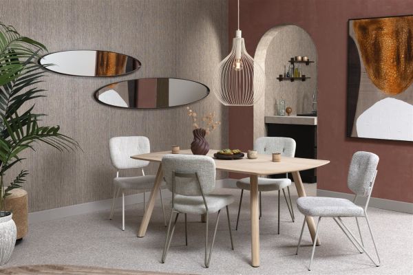June, chaise + ressorts ensaches - piétement RAL 1013 - nebbia + tissu Luton
