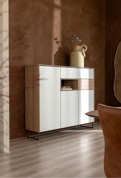 Lindfield, buffet 200 cm. - 2-portes + 3-tiroirs + 1-niche (+ LED)