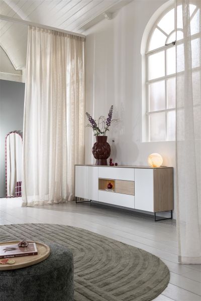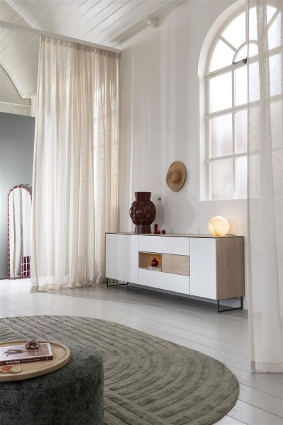 Lindfield, buffet bas 200 cm. - 1-portes + 3-tiroirs + 1-niche (+ LED)